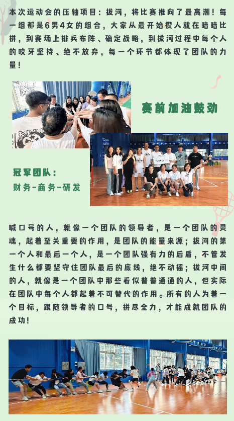 相信通過這次運動會,大家在合作和對抗中都對其他人有了新的認(rèn)知,在未來的工作和生活中,能夠更加融洽更加默契!